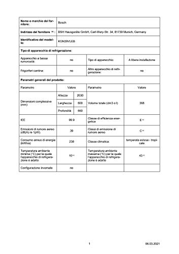 Productbeschrijving * Product hoogte: 2030 mm  * Breedte: 600 mm  * Diepte: 660 mm  * Volume koelruimte: 279 l Tooltip  () * Volume vriesvak: 89 l Tooltip  () * Inhoud totaal: 368 l  * Geluidsniveau: 39 dB Tooltip  () * No Frost – nooit meer ontdooien  * Jaarlijks energieverbruik in kWh: 238 kWh Tooltip  () * Fabrieksgarantie termijn: 2 jaar Tooltip ()