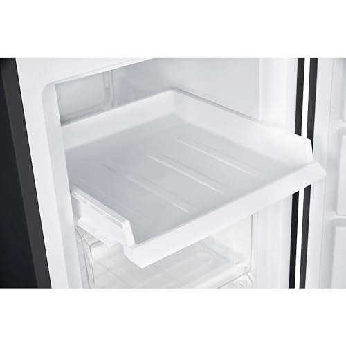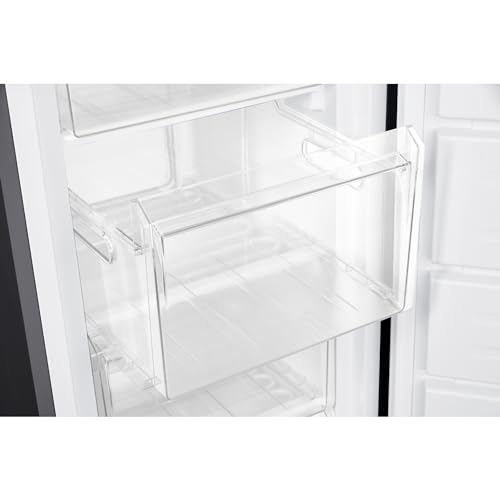Elegant zwart design: de moderne zwarte buitenkant van deze vriezer voegt een vleugje elegantie toe aan elke keuken, terwijl de strakke lijnen en het eenvoudige ontwerp ervoor zorgen dat hij in elk interieur past.