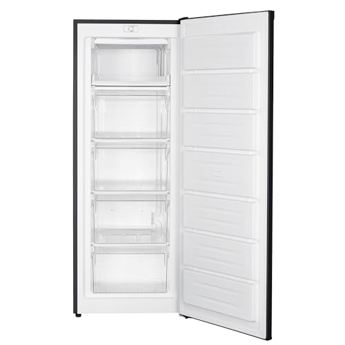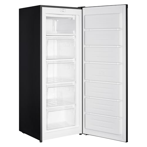 Specification: Wiggo WF-UR14E(B) Vrijstaande vrieskast in zwart, elegant design, 142,6 cm hoog, 168 liter volume, 5 praktische vakken