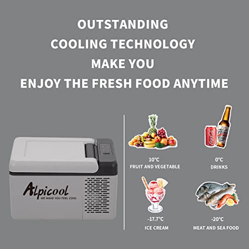 Specification: Alpicool C9 9L Mini koelkast compressor Auto Koelkast/vriesbox, elektrische 12/24V DC en 100-240V AC Autokoelkast voor auto, vrachtwagen, camping met stopcontact en USB-poort