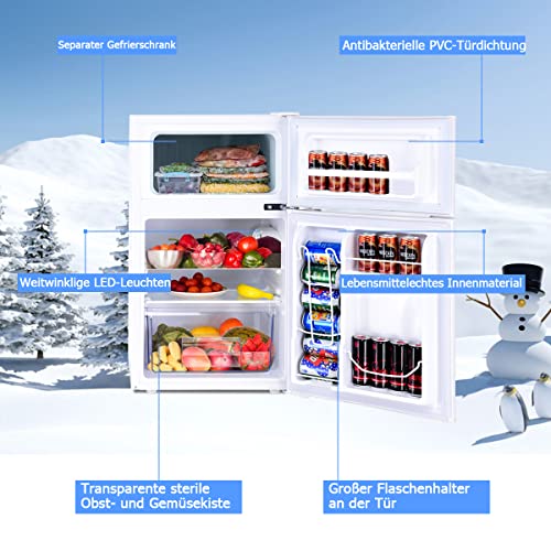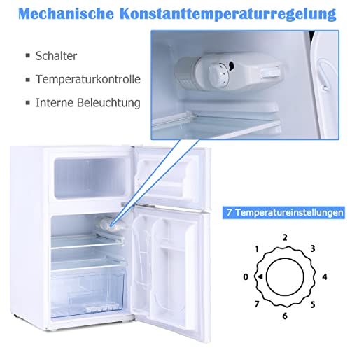 Specification: GOPLUS 90 l koelkast, mini-koelkast met 27 liter vriesvak, vriezer met stalen frame en instelbare thermostaat, koel-vriescombinatie voor thuis, kantoor, woning (wit)